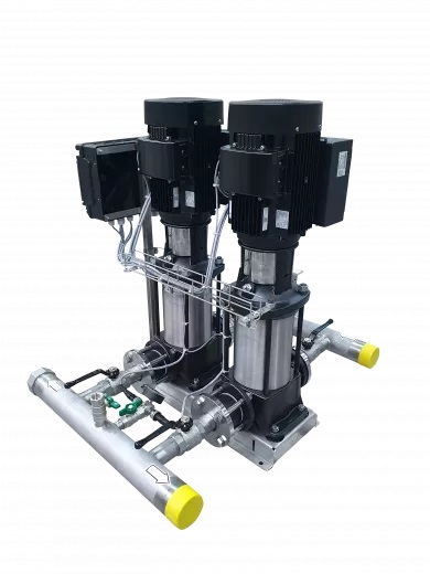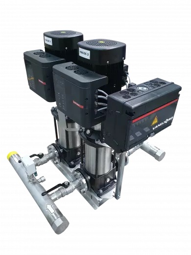Стандартные установки повышения давления Hydro-ME включают в себя от двух до трех насосов CRVE, соединённых параллельно и смонтированных на общей раме-основании со всей необходимой арматурой.