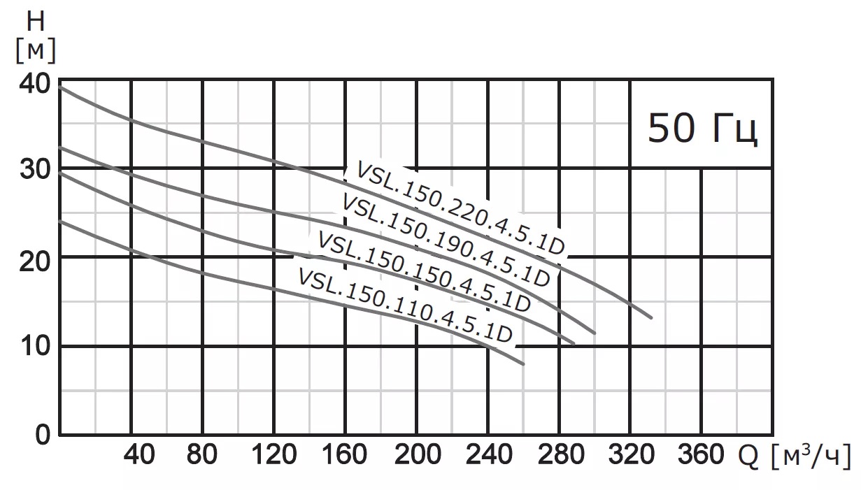 Детали погружных насосов выполнены из чугуна и нержавеющей стали. Модели насосов изготовлены как с 2-х полюсными двигателями, так и с 4-х и 6-ти полюсными двигателями. Мощность насосов от 0,75 кВт до 90 кВт.