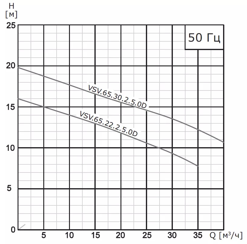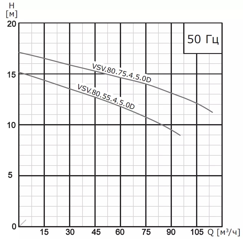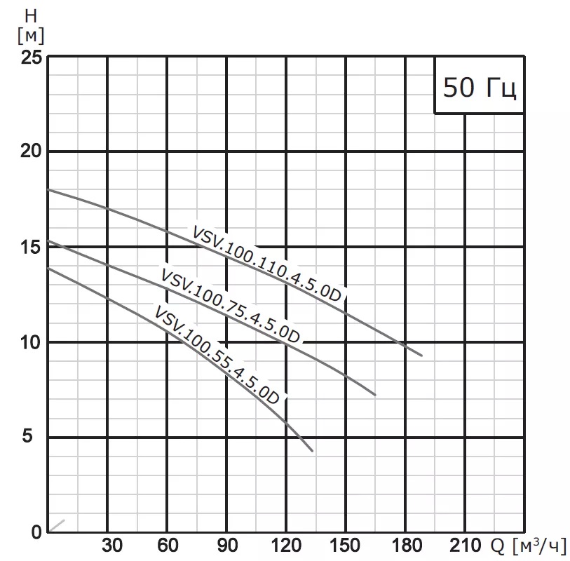 Детали погружных насосов выполнены из чугуна и нержавеющей стали. Модели насосов изготовлены как с 2-х полюсными двигателями, так и с 4-х и 6-ти полюсными двигателями. Мощность насосов от 0,75 кВт до 90 кВт.