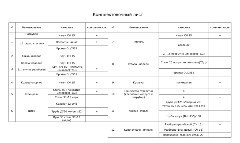 - Материал ниппеля гидранта – чугун Сч 15, резьба ниппеля оцинкованная (гальваника)