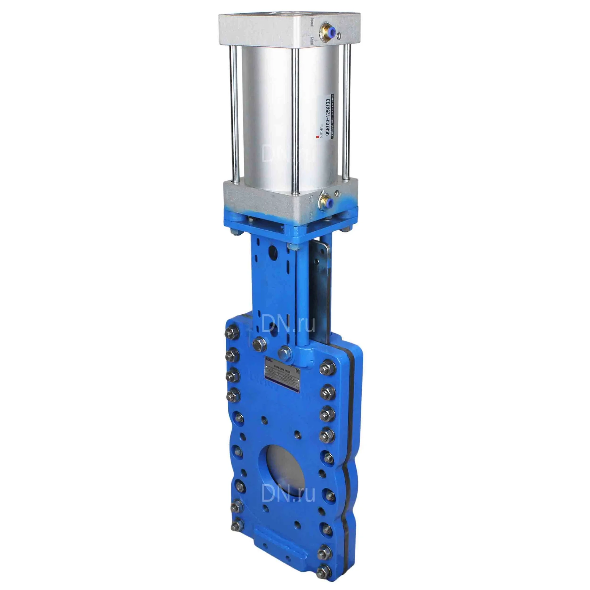 Задвижка шиберная со сквозным ножом DN.ru GVKRT3431N-2W-Fb-2P Ду200 Ру10, с пневмоприводом